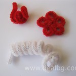 Това е един малък урок – tutorial за направа на мартеница от декоративна тел. Необходимите материали са: две пръчки декоративна тел с бял и червен цвят по 30 см всяка, 30 см усукан конец за мартеници, картон за закачване на мартеницата, телче или карфица за закачване, малка безопасна игла, ако има, целофаново пликче с размер около 9 на 12 см. Необходимите инструменти са: химикалка, ножица, печати и тампони за украса на картона за закачване.